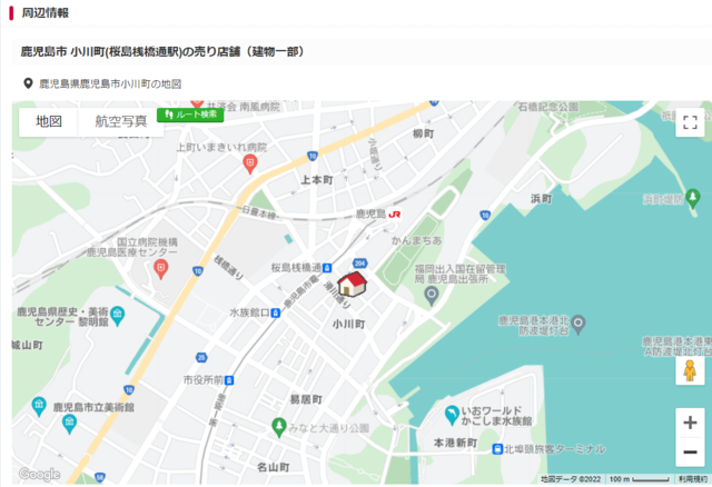 | 交通 | 鹿児島市電唐湊線 / 桜島桟橋通駅 徒歩2分 電車ルート案内 JR鹿児島本線 / 鹿児島駅 徒歩6分 電車ルート案内 鹿児島市電唐湊線 / 水族館口駅 徒歩4分 |